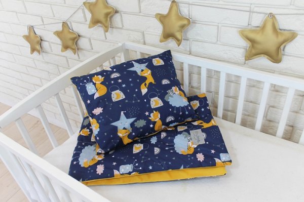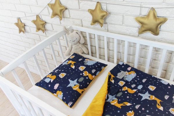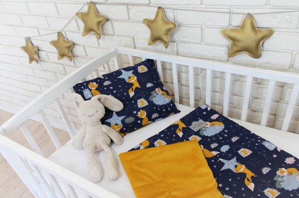 Baby Nellys 2-dílná sada do postýlky Velvet hořčicový, liška a noční obloha