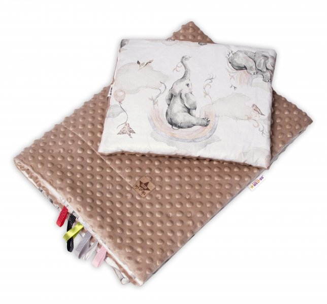Baby Nellys 2-dílná sada, oboustr. dečka Minky s polštářkem 100x75cm, Slon a duha