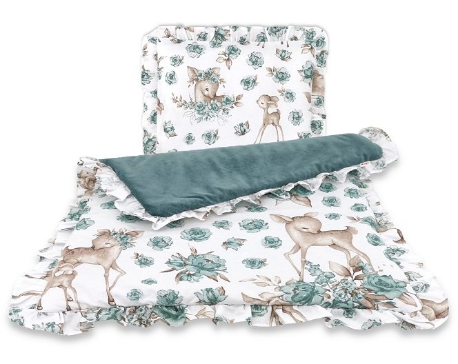 Baby Nellys 2-dílná sada s volánkem do kočárku Velvet, srnka a růže, mátová