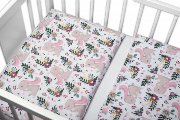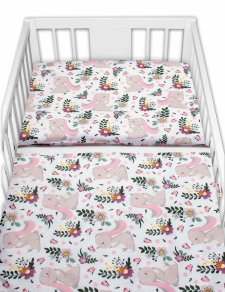 Baby Nellys 2-dílné bavlněné povlečení Králíček na louce - růžová