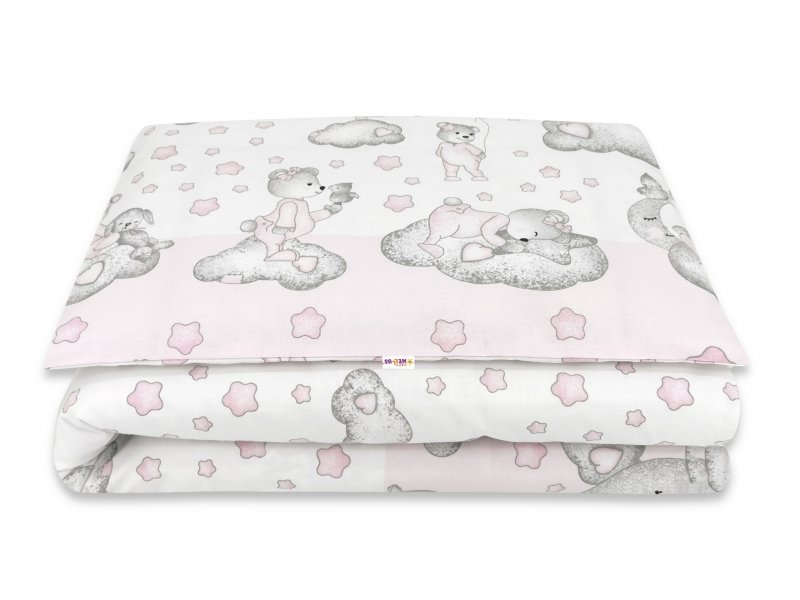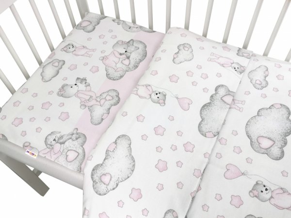 Baby Nellys 2-dílné bavlněné povlečení, Teddy on the sky - růžové - 120x90
