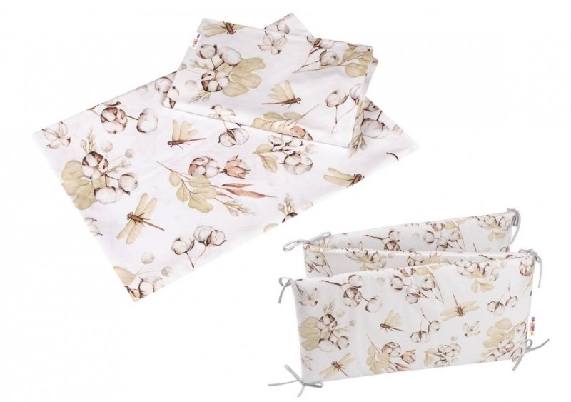 Baby Nellys 3-dílná sada Mantinel s povlečením COTTON Premium, bílá/béžová - 120x90