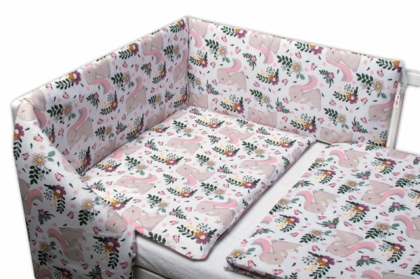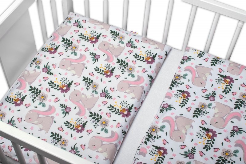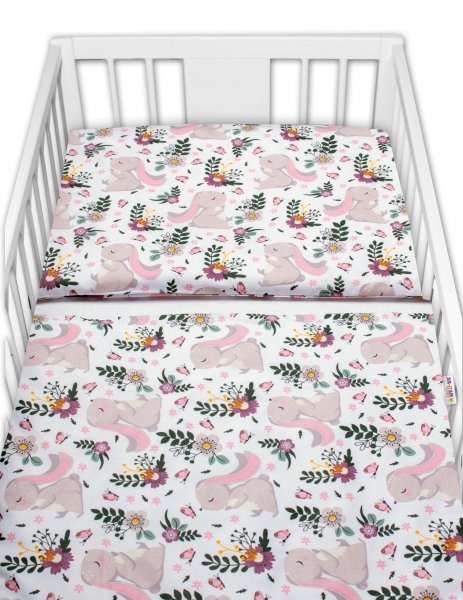 Baby Nellys 3-dílná sada, mantinel s povlečením Králíček na louce - růžová