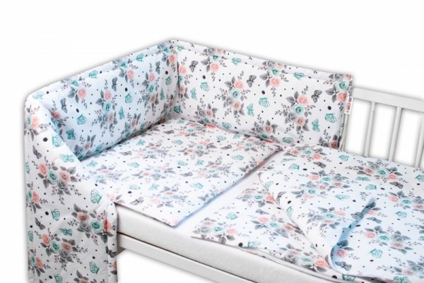 Baby Nellys 3-dílná sada Mantinel s povlečením - Růžičky