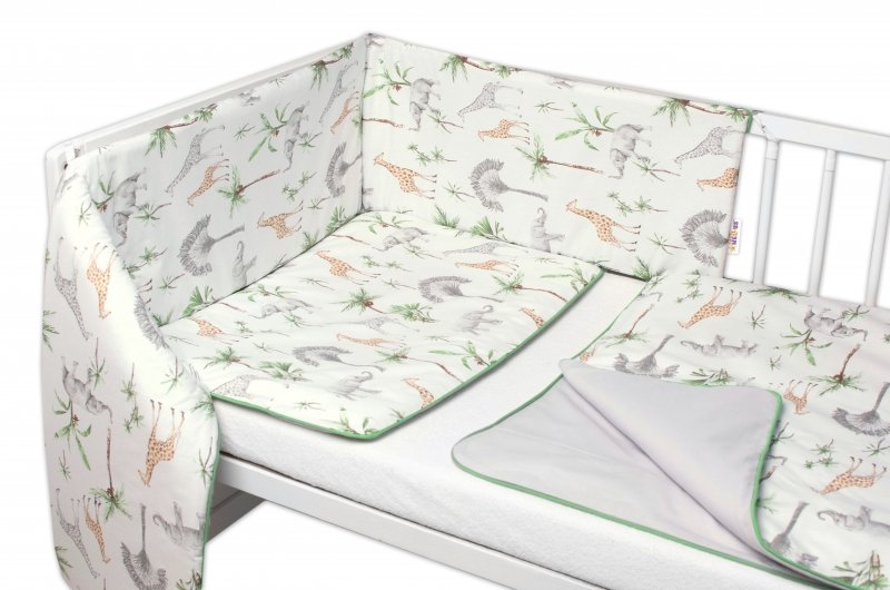 Baby Nellys 3-dílná sada mantinel s povlečením Safari - bílá s potiskem/zelená - 120x90