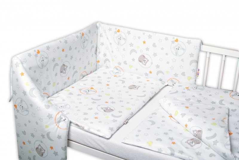 Baby Nellys 3-dílná sada, mantinel s povlečením Sovičky
