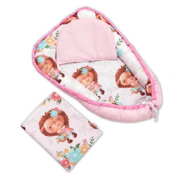 Baby Nellys 3-dílná sada Oboustranné hnízdečko pro panenku - Ježek