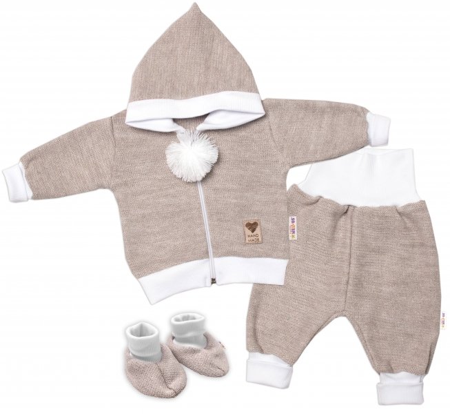 Baby Nellys 3-dílná souprava Hand made, pletený kabátek, kalhoty a botičky