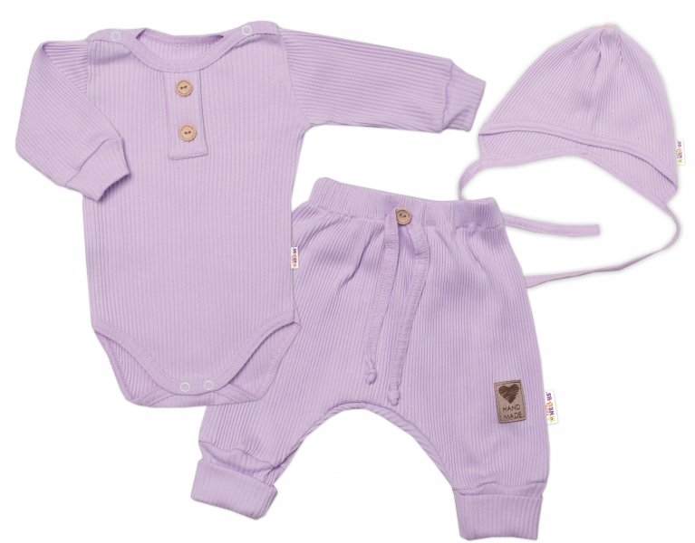 Baby Nellys 3-dílná žebrovaná soupr. Hand Made, body, tepláčky a čepička