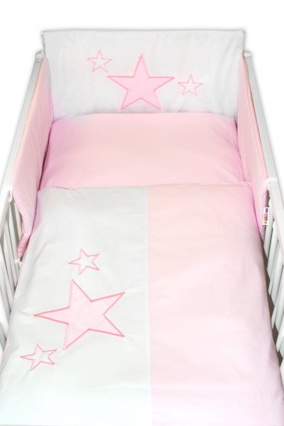 Krásná 5-dílná sada do postýlky je vyrobená z bavlněné látky.