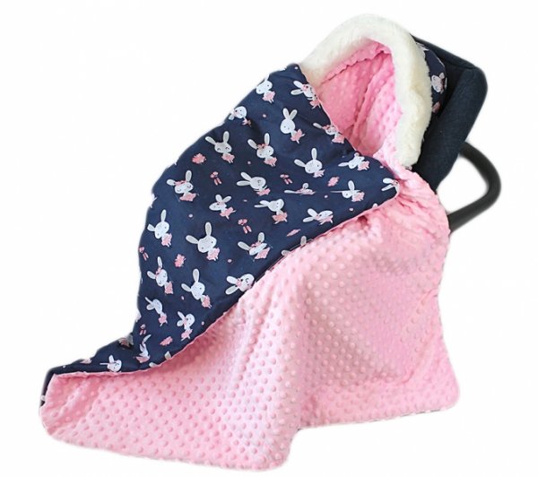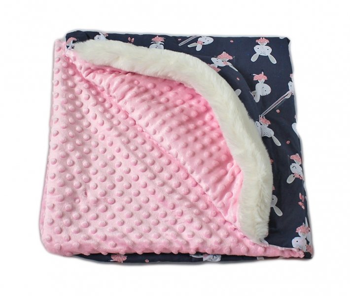 Baby Nellys Bavlněná oboustanná dečka 3v1 s minky a kožešinkou, 90x90 cm, králičci