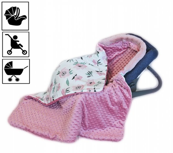 Baby Nellys Bavlněná oboustranná dečka 3v1 s minky a kožešinkou, 90x90 cm, kvítky