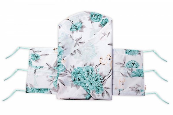 Baby Nellys Bavlněný náhradní povlak, potah na retro zavinovačku LALLY, Plameňák - zelený