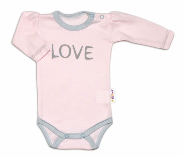 Baby Nellys Body dlouhý rukáv Love - růžové - 50 (0-1m)