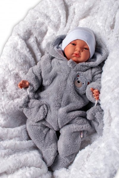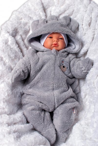 Baby Nellys Chlupáčkový overal Luna s kapucí + rukavičky, Medvídek