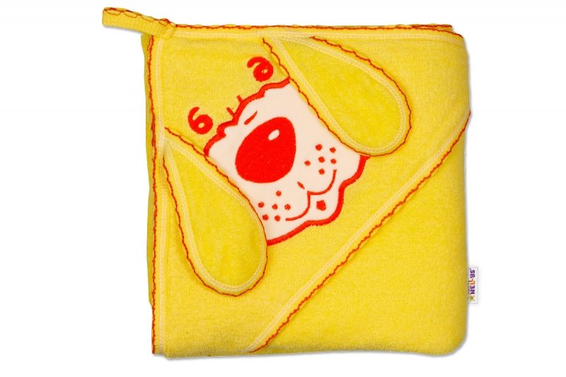 Dětská osuška Baby Nellys Pejsek. Froté osuška s obrázkem pejska na kapuci. Materiál: 100% bavlna. Rozměry: cca 80 x 80cm. 1. JAKOST.