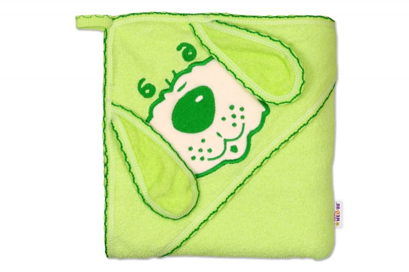 Baby Nellys Dětská osuška 80 x 80cm Pejsek s kapucí - zelená