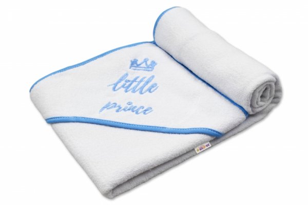 Baby Nellys Dětská termoosuška Little prince s kapucí, 100 x 100 cm - bílá, modrá výšivka
