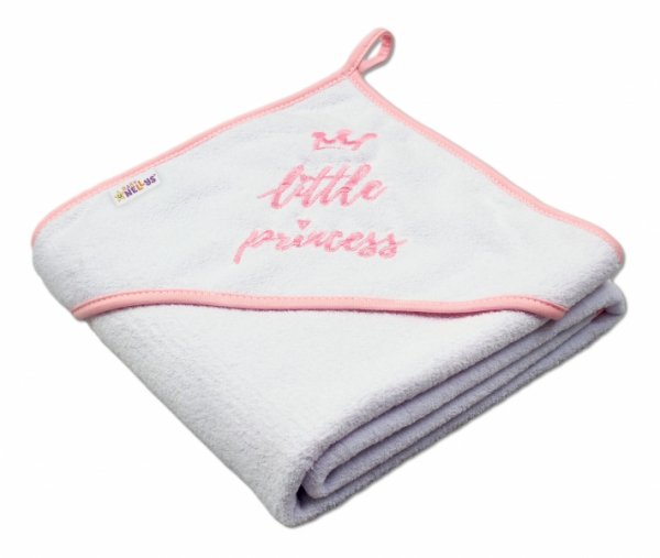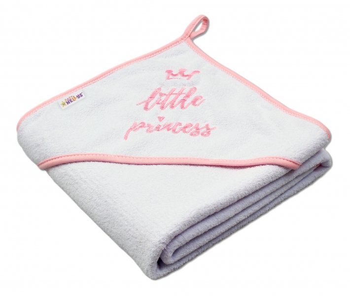 Baby Nellys Dětská termoosuška Little princess s kapucí, 80 x 80 cm - bílá, růžová výšivka
