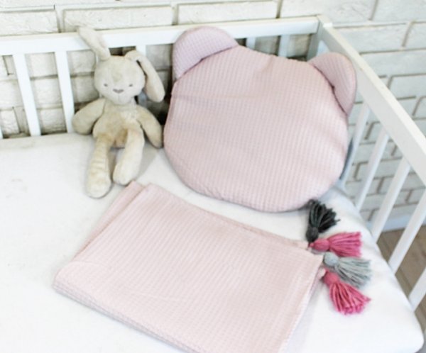 Přikrývku (deka) + polštářek ve tvaru medvědí hlavy.