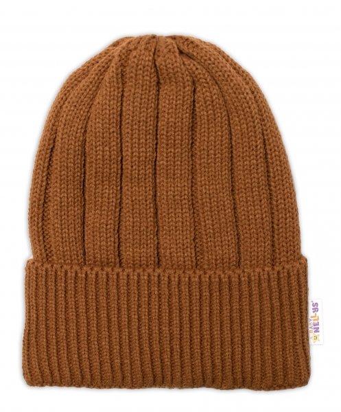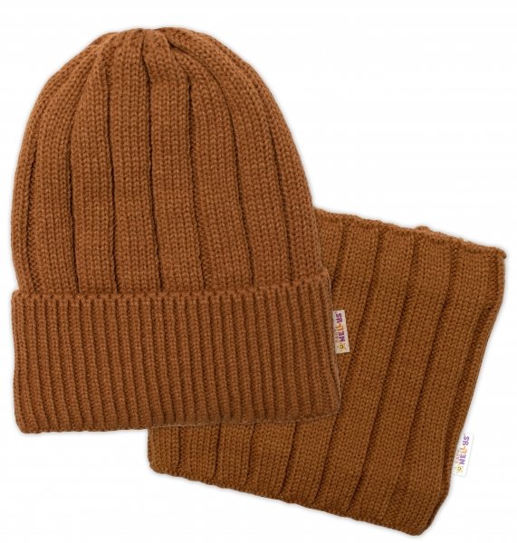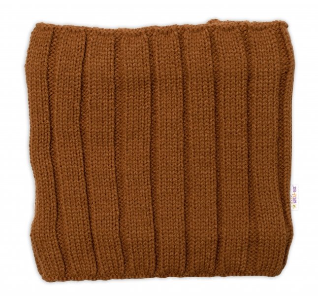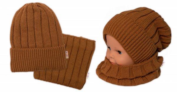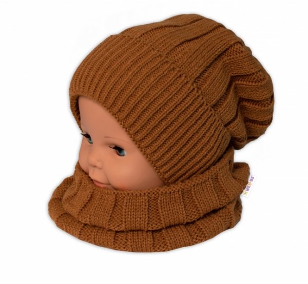 BABY NELLYS Dětská zimní nadčasová čepice + komínek , hnědá - 98-104 (2-4r)