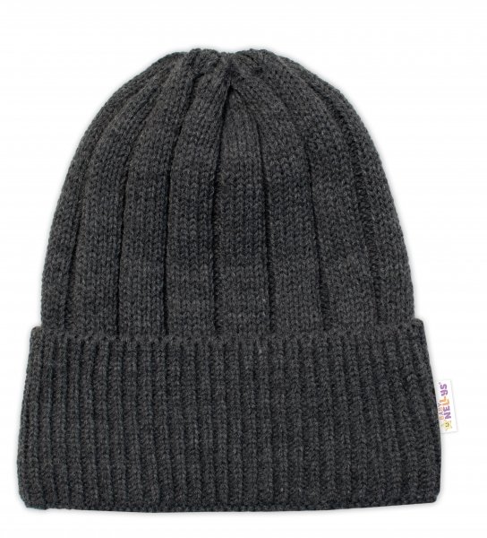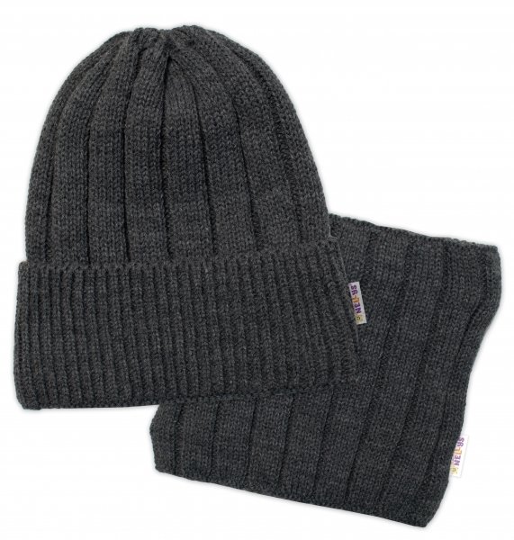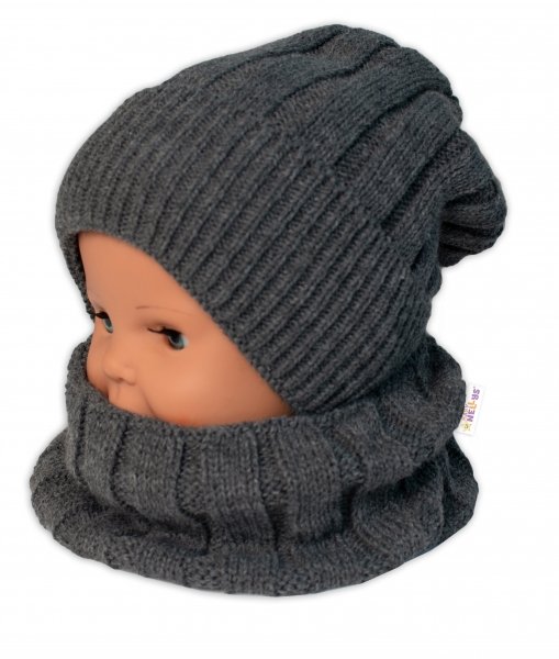 BABY NELLYS Dětská zimní nadčasová čepice + komínek , tm. šedá - 98-104 (2-4r)