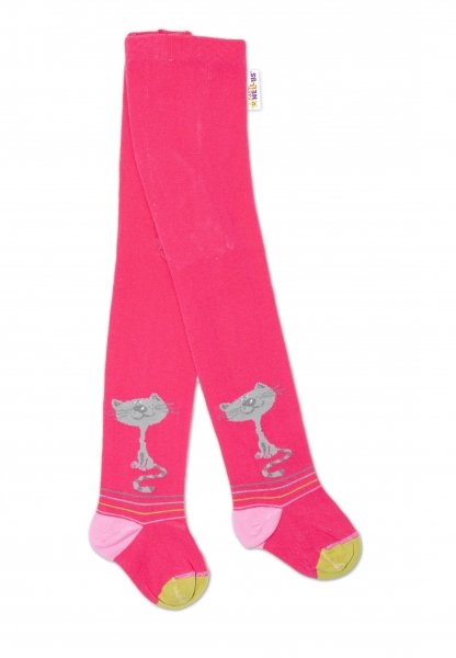 Baby Nellys Dětské punčocháče bavlněné, Kocourek, malinové