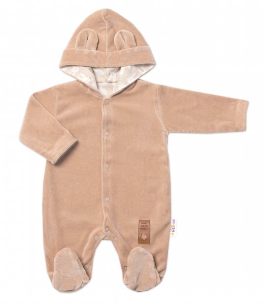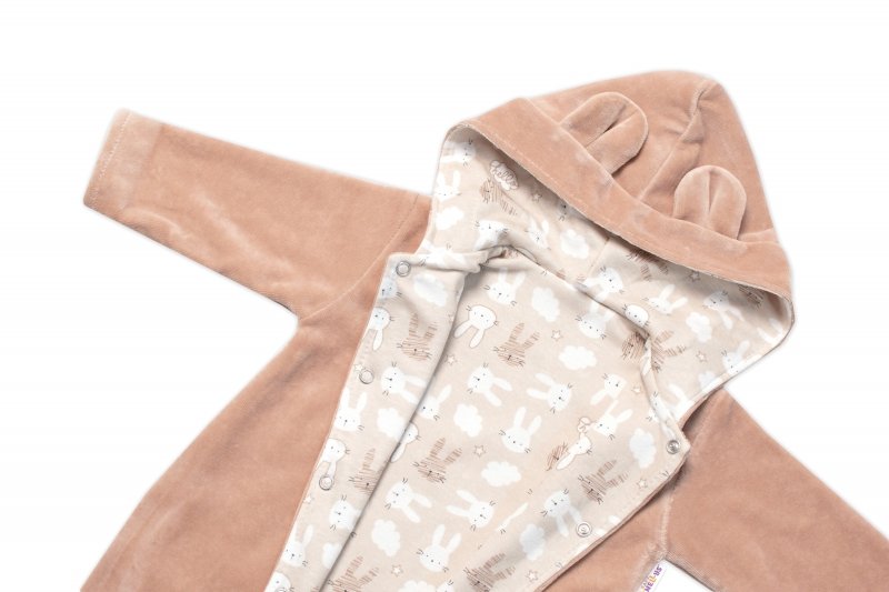Baby Nellys Dvouvrstvý velurový overal s kapucí New Bunny