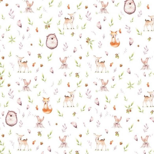Baby Nellys Flanelová plenka, 70x80 cm - Ježek a kamarádi, bílá