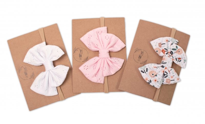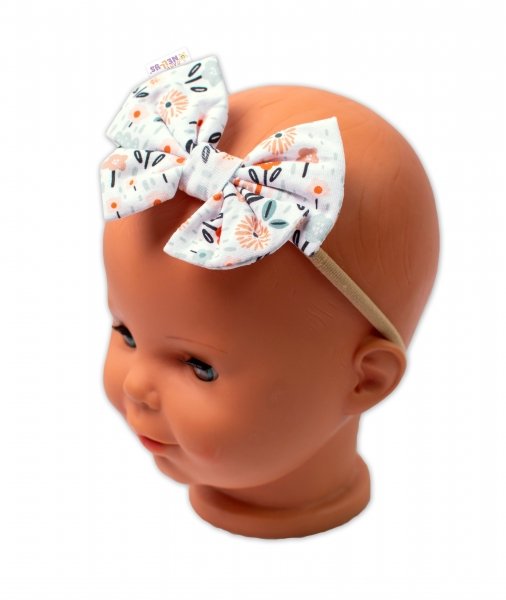 Baby Nellys Hand Made Dvouvrstvá bavlněná čelenka - mašlička Palouček, bílá - 1ks - univerzální