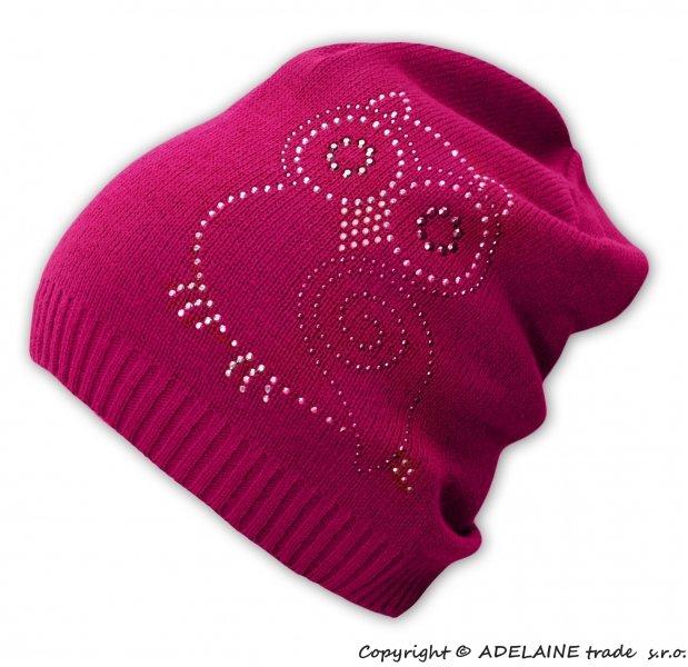 BABY NELLYS Jarní/podzimní čepice Sovička - malinově růžová - 34/36 čepičky obvod