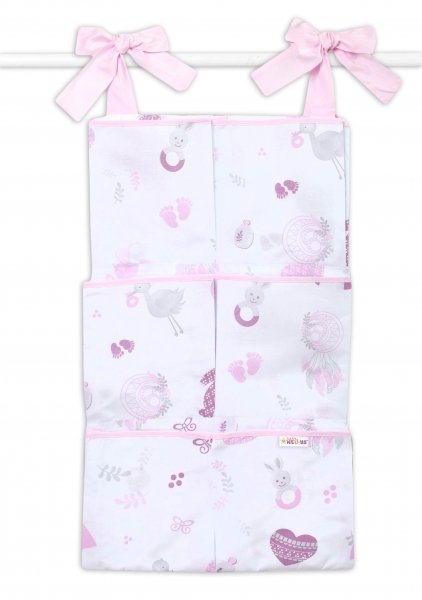 Baby Nellys Kapsář na postýlku 6 kapes, New Love Baby - růžová