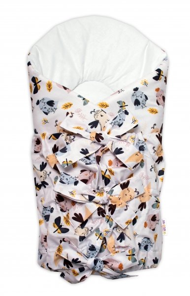 Baby Nellys Klasická retro šněrovací zavinovačka Ptáčci a Vážky - béžová, bílá