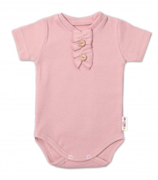 Baby Nellys Kojenecké žebrované body s knoflíčky kr. rukáv, Girl - pudrové - 62 (2-3m)