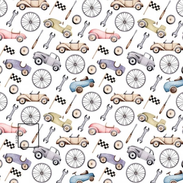 Baby Nellys Kvalitní bavlněná plenka - Tetra Premium, 70x80 cm - Retro Car, bílá