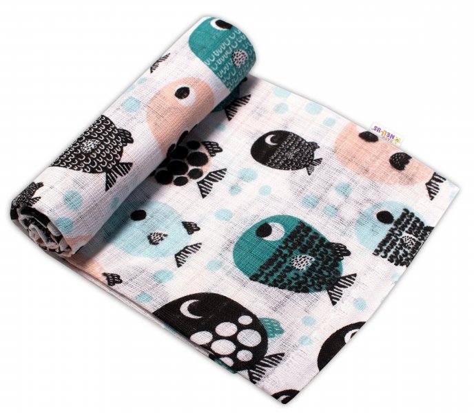 Baby Nellys Kvalitní bavlněná plenka - Tetra Premium, 70x80 cm - Rybičky, zelená