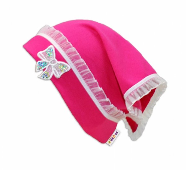 Baby Nellys Letní, jarní šátek s mašličkou a volánkem - tm. růžová - uni