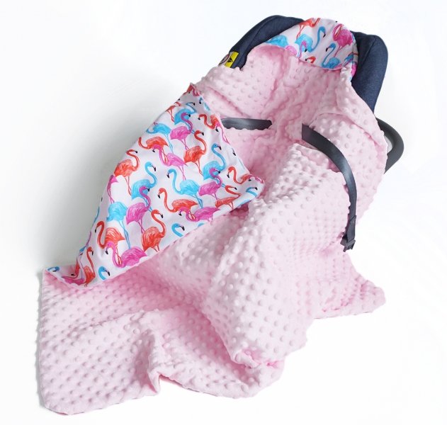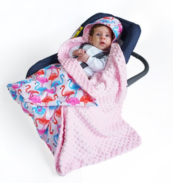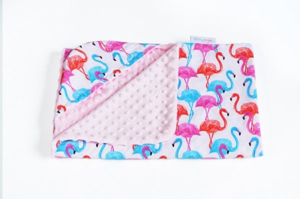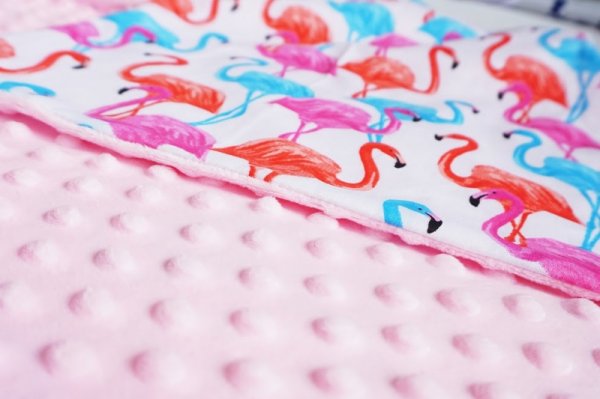 Baby Nellys Luxusní bavlněná dečka 3v1 s minky, 90 x 90 cm, plameňáci, Minky - růžová
