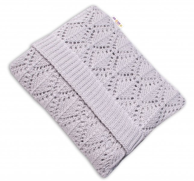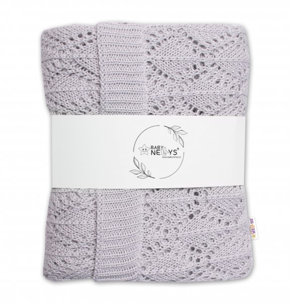 Baby Nellys Luxusní bavlněná háčkovaná deka, dečka LOVE, 75x95cm - šedá