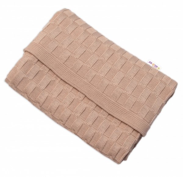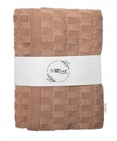 Baby Nellys Luxusní bavlněná pletená deka, dečka CUBE, 80 x 100 cm - béžová