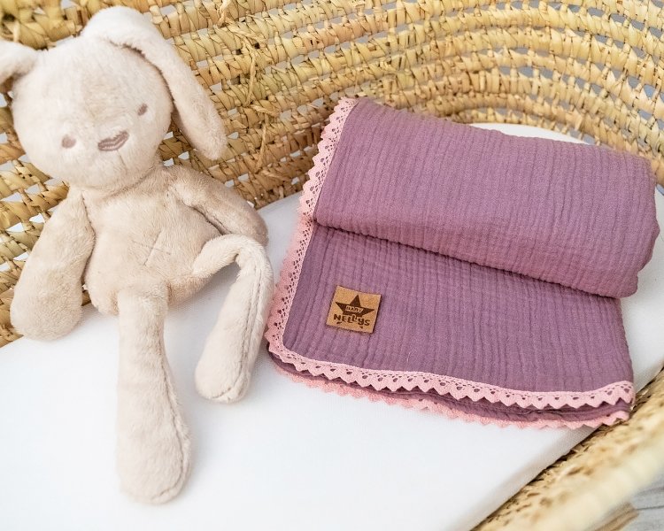 Baby Nellys Luxusní dvouvrstvá mušelínová dětská deka, 75 x 100 cm, lila, fialová