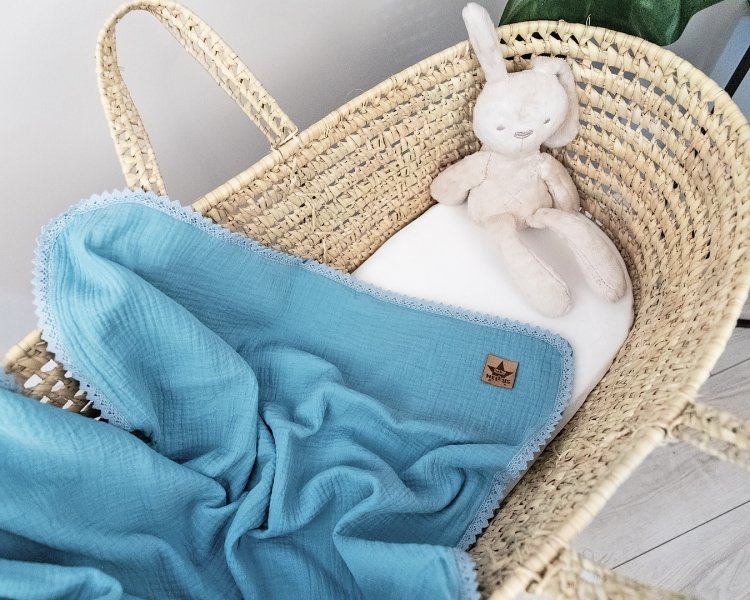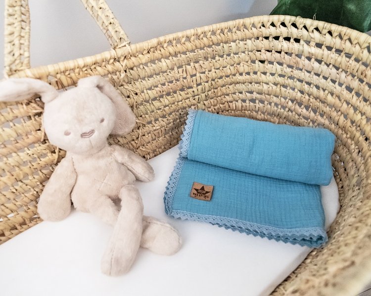 Baby Nellys Luxusní dvouvrstvá mušelínová dětská deka, 75 x 100 cm, modrá