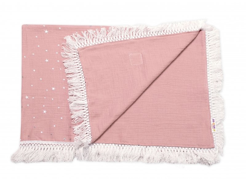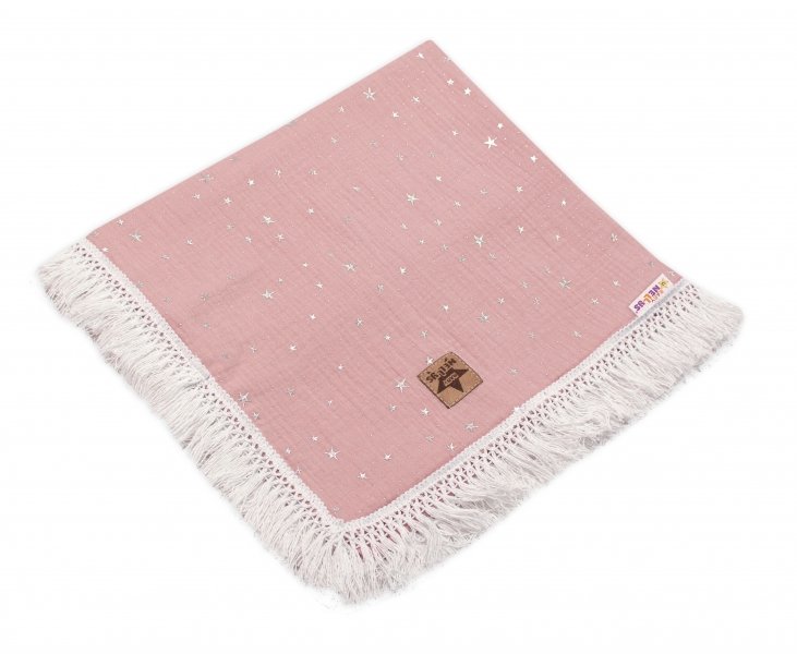 Baby Nellys Luxusní jednovrstvá mušelínová deka Stars s třásněmi, 70 x 100 cm,pudrová