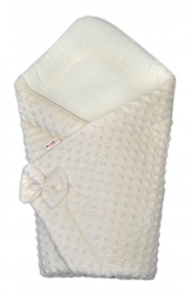 Baby Nellys Luxusní zavinovačka s mašlí 75x75cm, Minky Baby Duo - smetanová
