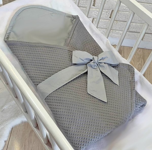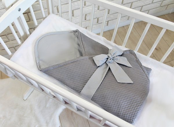 Baby Nellys Luxusní zavinovačka vaflová s mašlí 75 x 75cm - šedá