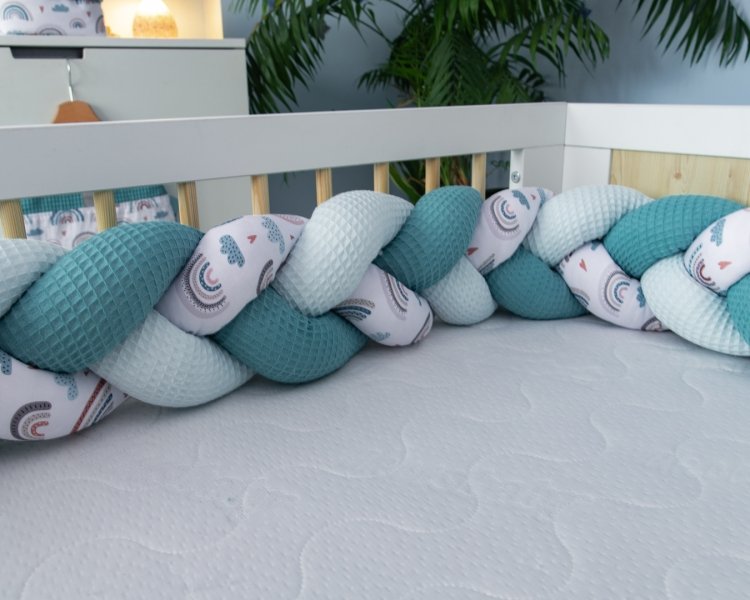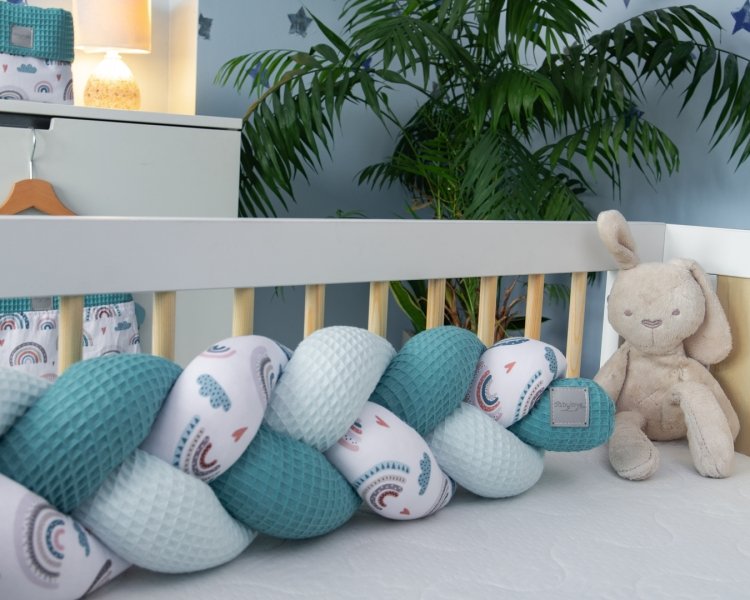 Pletený cop je moderní alternativou tradičního nebo polštářového mantinelu. Každý pramen je vyroben z nejkvalitnějšího strečového a měkkého bavlněného materiálu a antialergické výplně. Jsou ručně pletené.