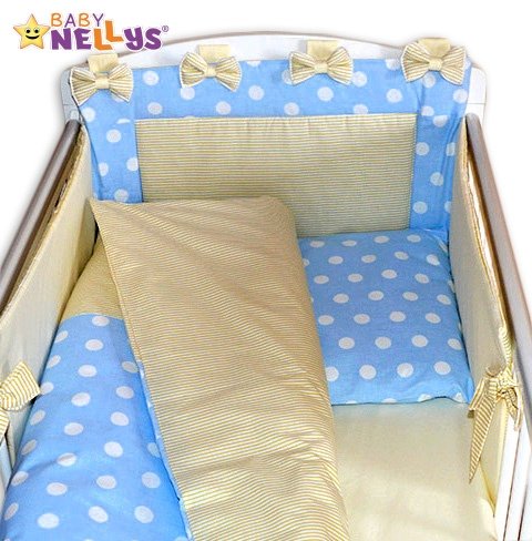 Baby Nellys Mantinel s povlečením Mašlička - Bubble sv.modré/jemně béžové proužky - 120x90