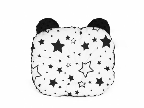 Baby Nellys Oboustanný polštářek s oušky, 30x35cm - Hězdičky,minky černá