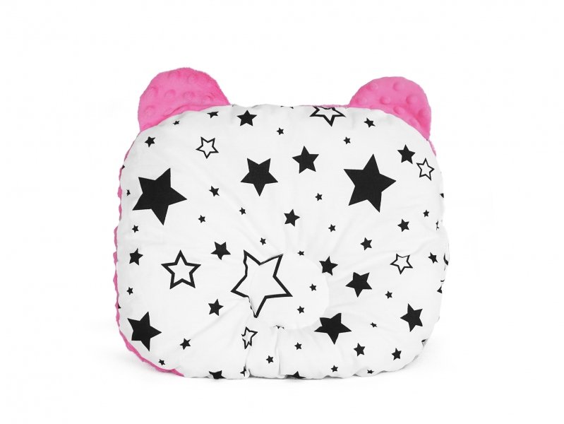 Baby Nellys Oboustanný polštářek s oušky, 30x35cm - Hvězdy a hvězdičky, minky růžová