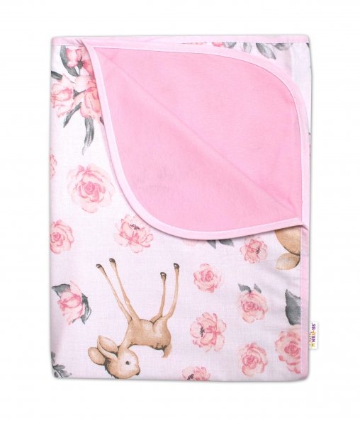 Baby Nellys Oboustranná letní deka Bavlna + jersey 100x75cm, Srnka a růže - růžová